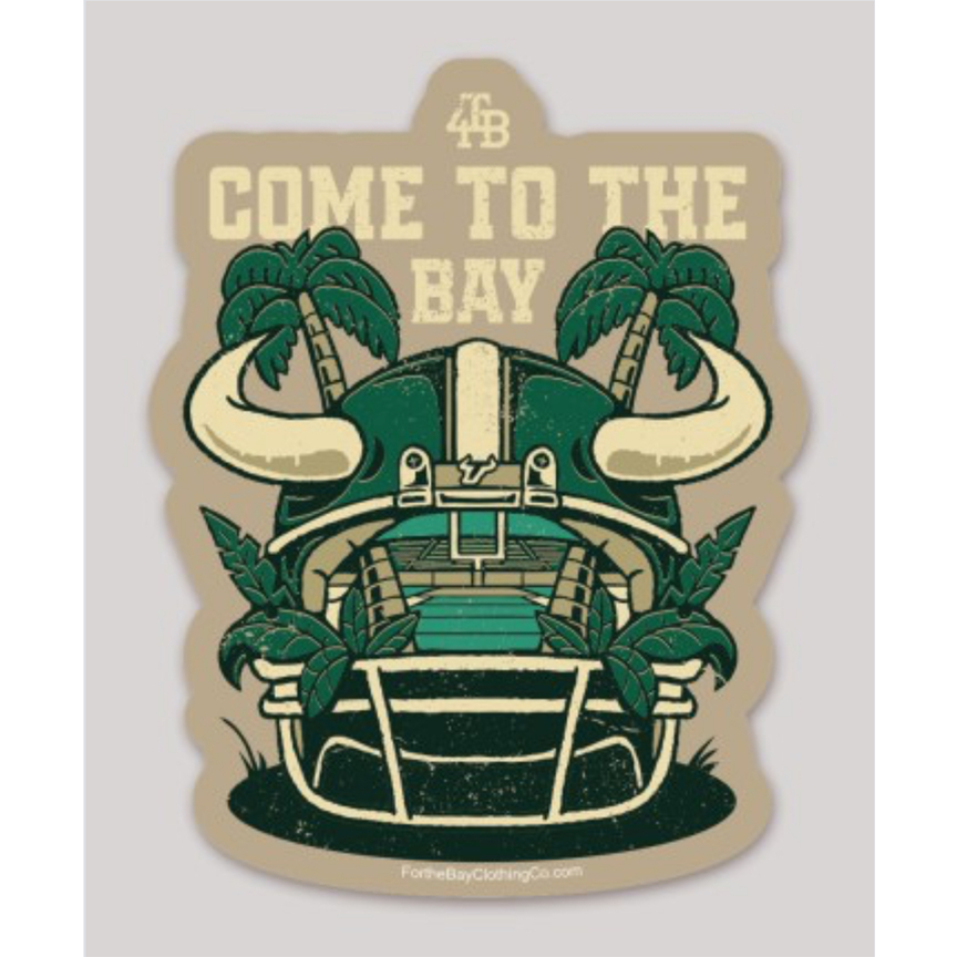 Rock the Green & Gold with this new "Come to the Bay" sticker! Printed with a matte finish, this 2.37 x 3 inch sticker will definitely be a Beach favorite around the Bay!