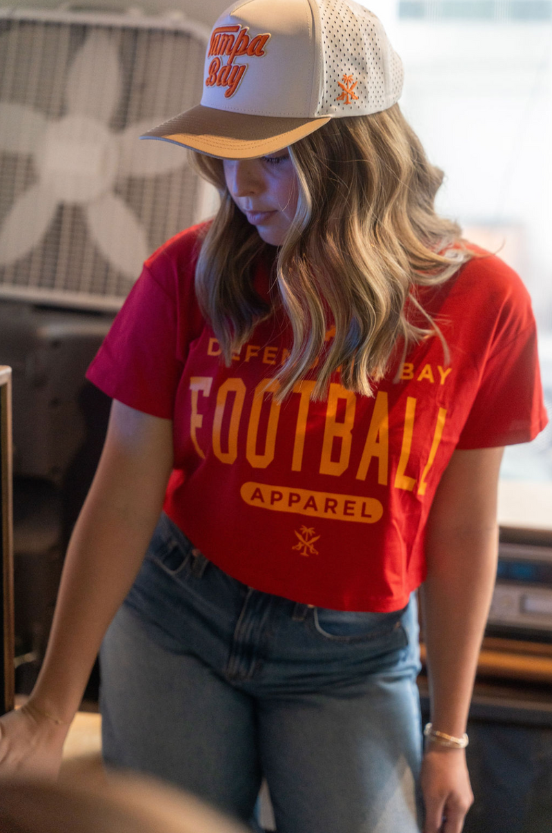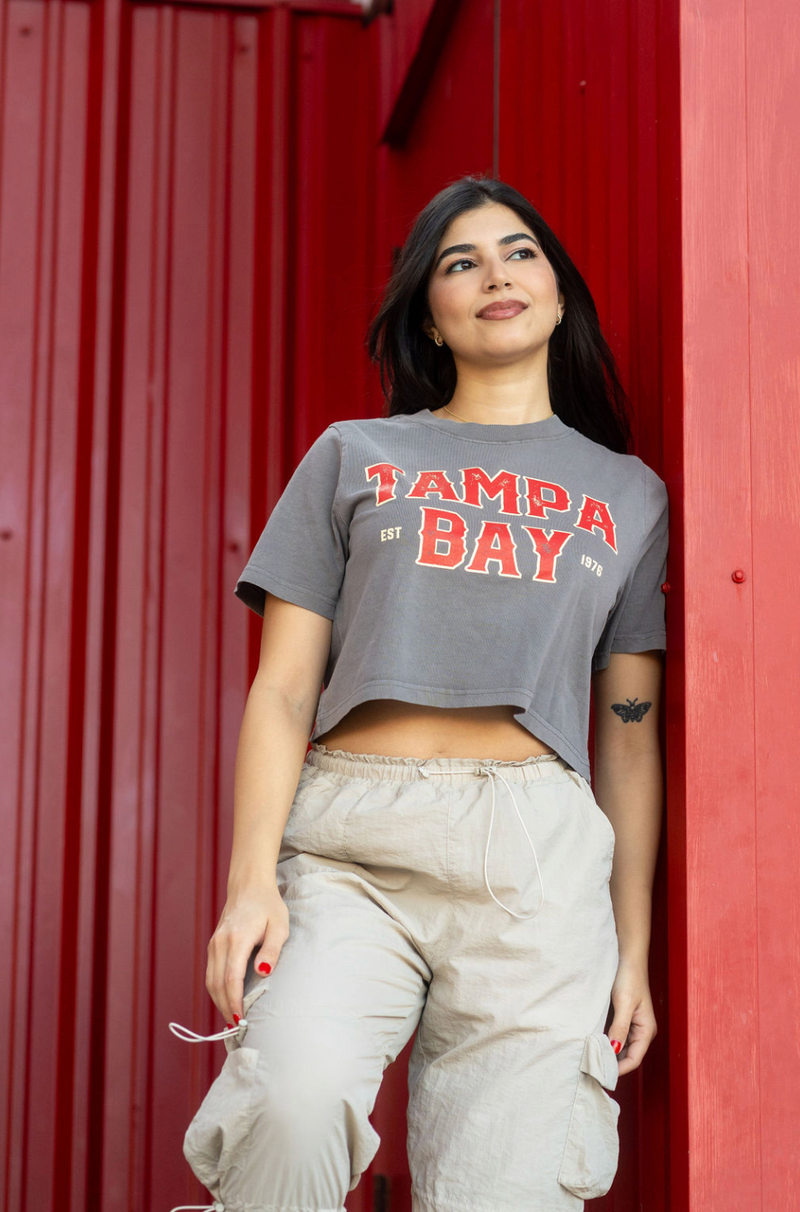 Ladies Tampa Bay Football Premium Faded Crop tee