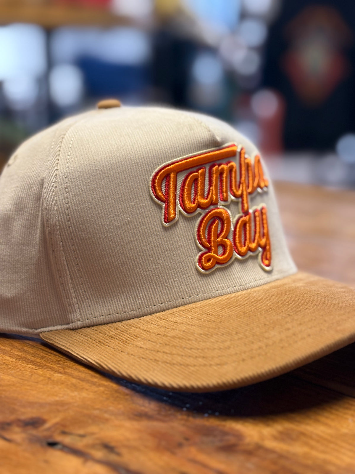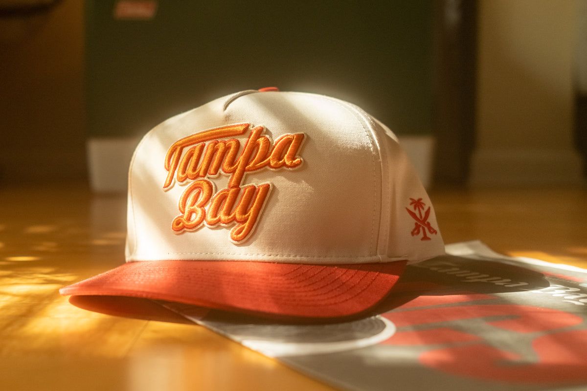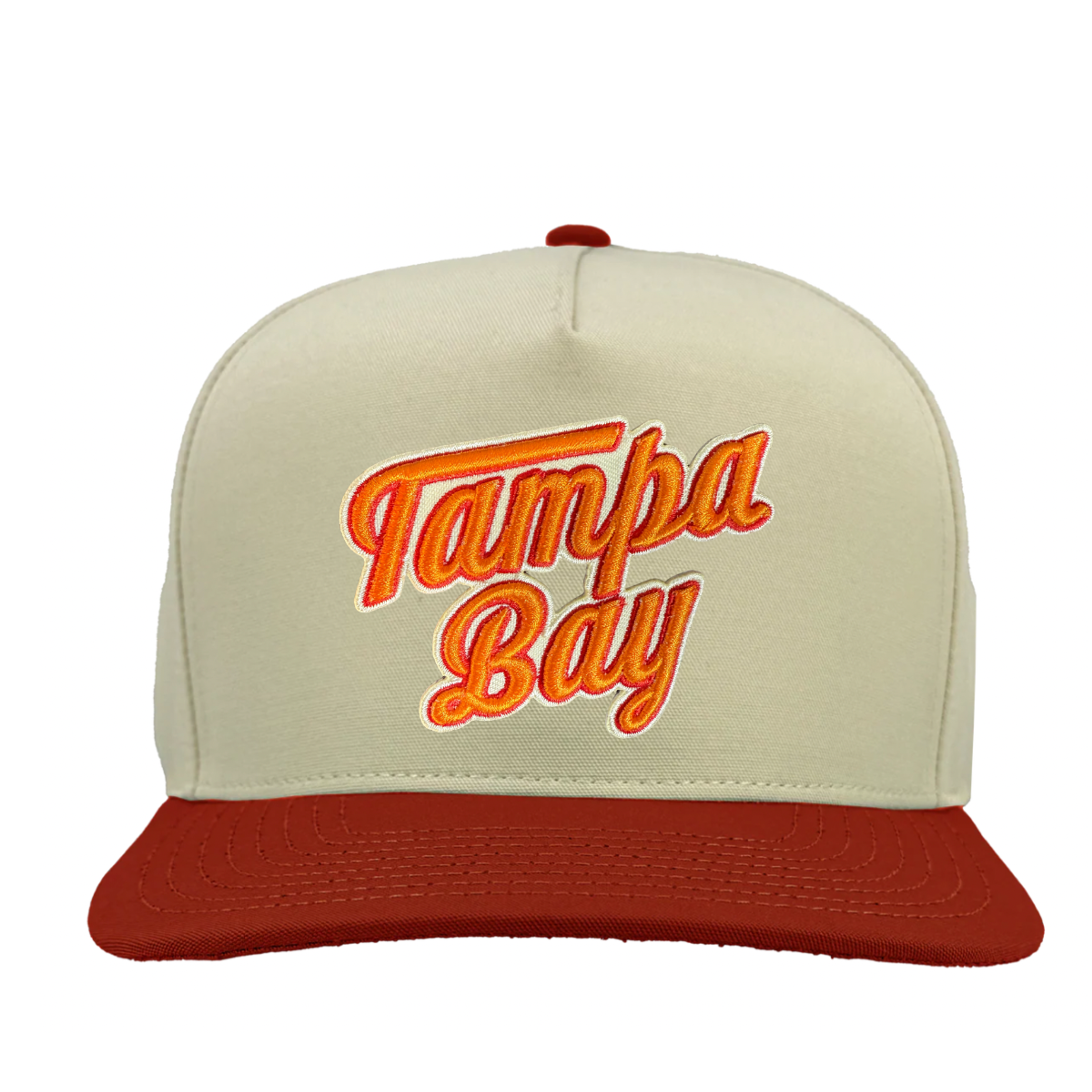 This clean performance snapback features a striking Tampa Bay script logo in retro creamsicle orange and deep red embroidery, bringing serious old-school energy to your game day ‘fit or everyday lineup.
