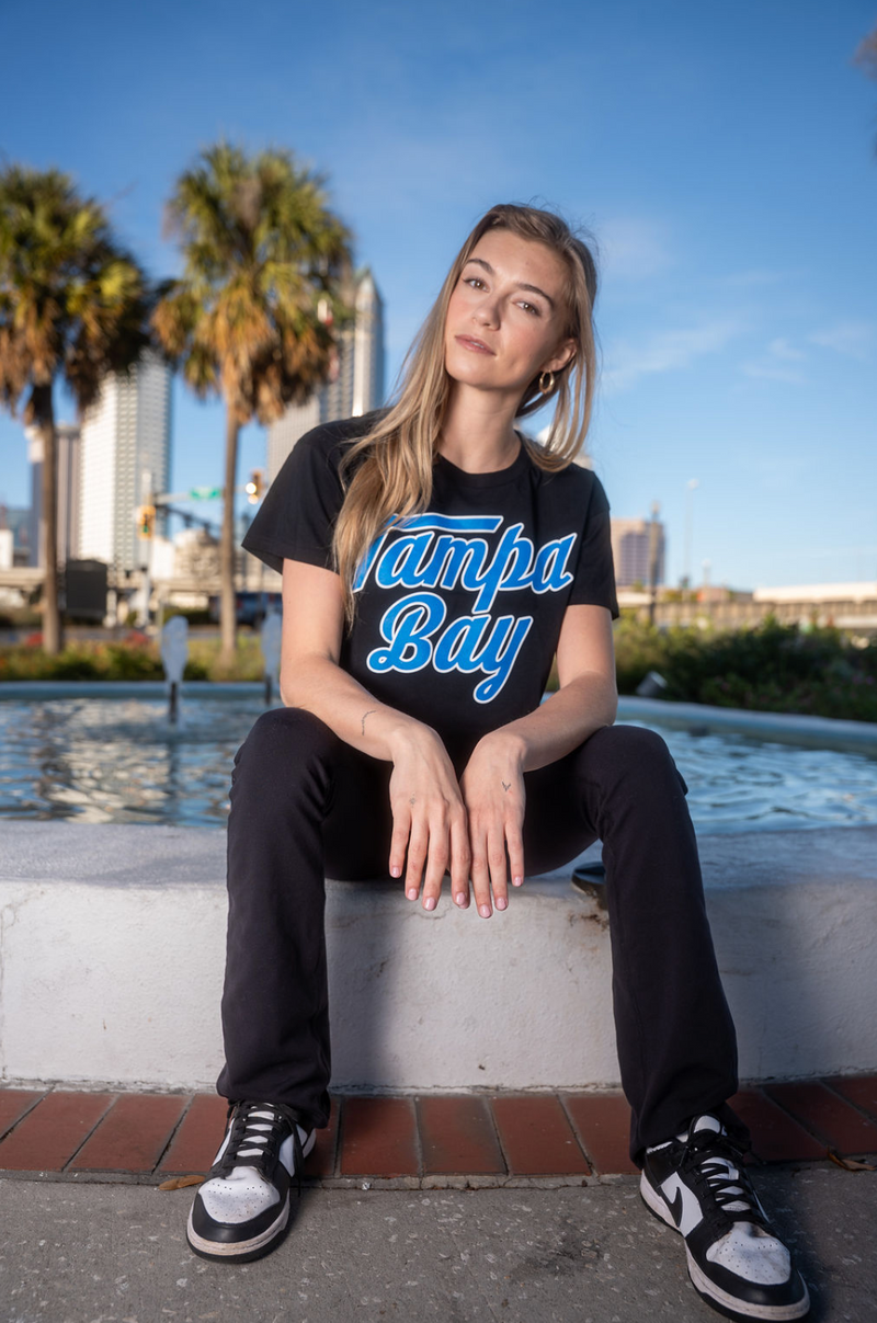 Ladies Tampa Bay Football Premium Faded Crop tee