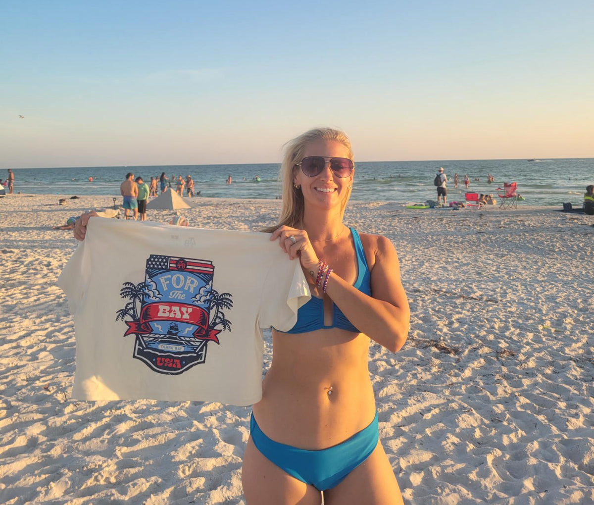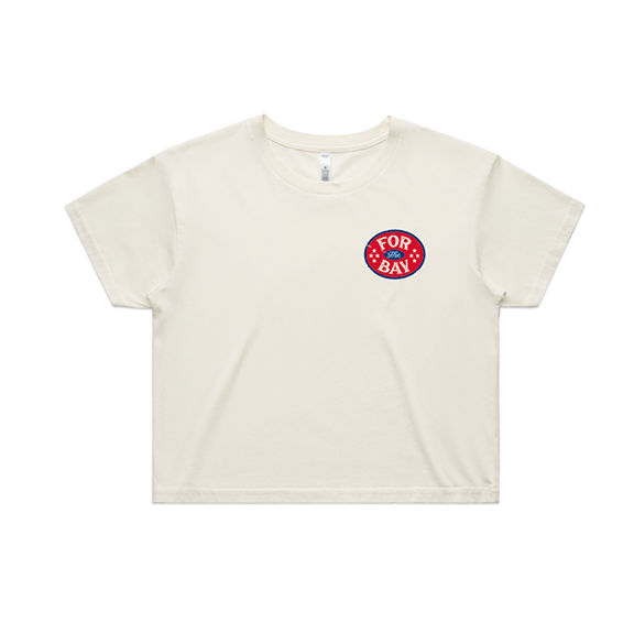Ladies...Get ready for Summer in the Bay with our New For the Bay 'Merica crop!  Rock this Beauty on the Boat, at the Beach, or anywhere you want to show off your Love FOR THE BAY & the Stars & Stripes!