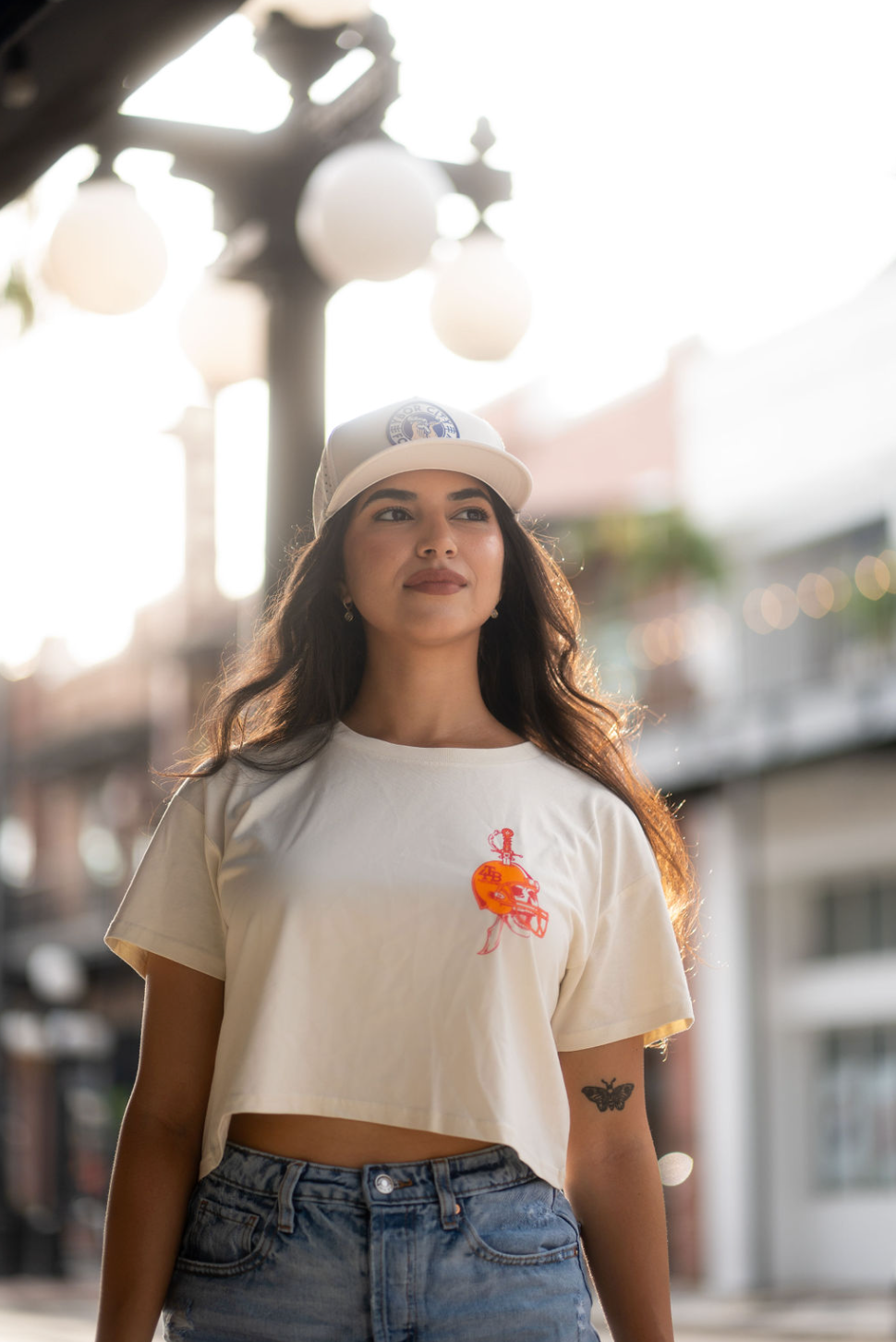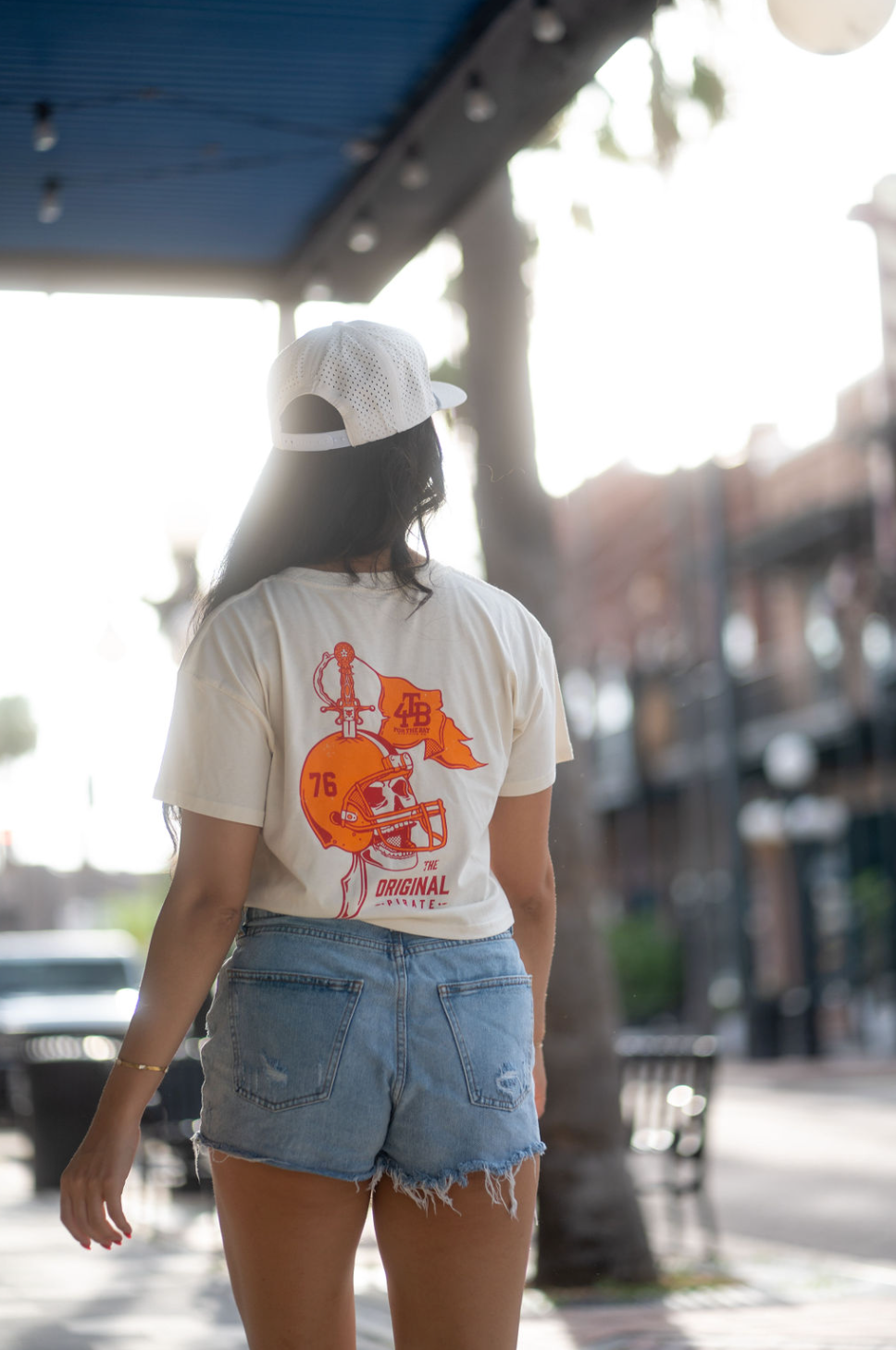 The Creamsicle craze is Back Tampa Bay!  Ladies, Pay Homage with our New Original Pirate crop tee! Be the talk of the tailgate with this beauty crop!