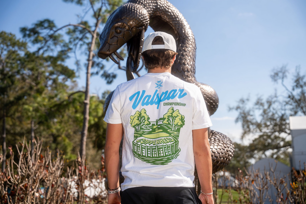 The Valspar Championship x For the Bay Tee celebrates one of the most iconic tournaments in golf, right here in our backyard. Featuring a bold back graphic inspired by the legendary Copperhead Course and a clean, understated left-chest hit on the front, this tee blends elevated design with timeless tournament energy.