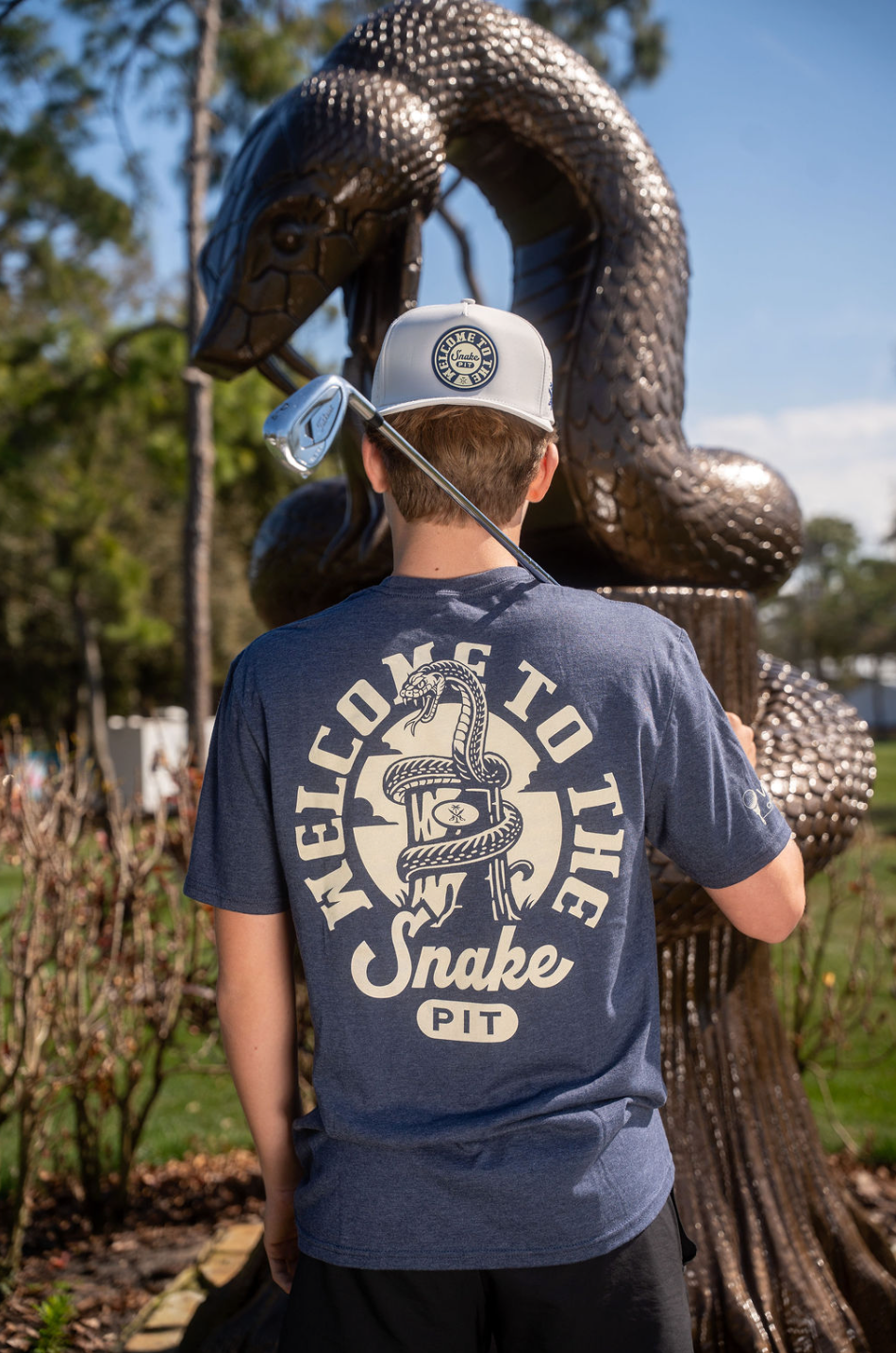 The Welcome to the Snake Pit Tee pays tribute to the legendary closing holes of the Copperhead Course — where tournaments are won, lost, and remembered. Featuring a bold back graphic with coiled-snake artwork and a clean circular chest hit on the front, this tee brings grit, tradition, and Tampa Bay attitude together in one elevated piece.