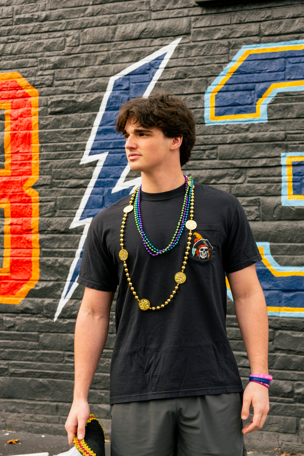 Where legends gather and beads fly. The Gasparilla Bones & Beads Tee captures the spirit of Tampa’s most iconic invasion—featuring a fearless skeletal pirate draped in parade beads and ready to rule the Bay.